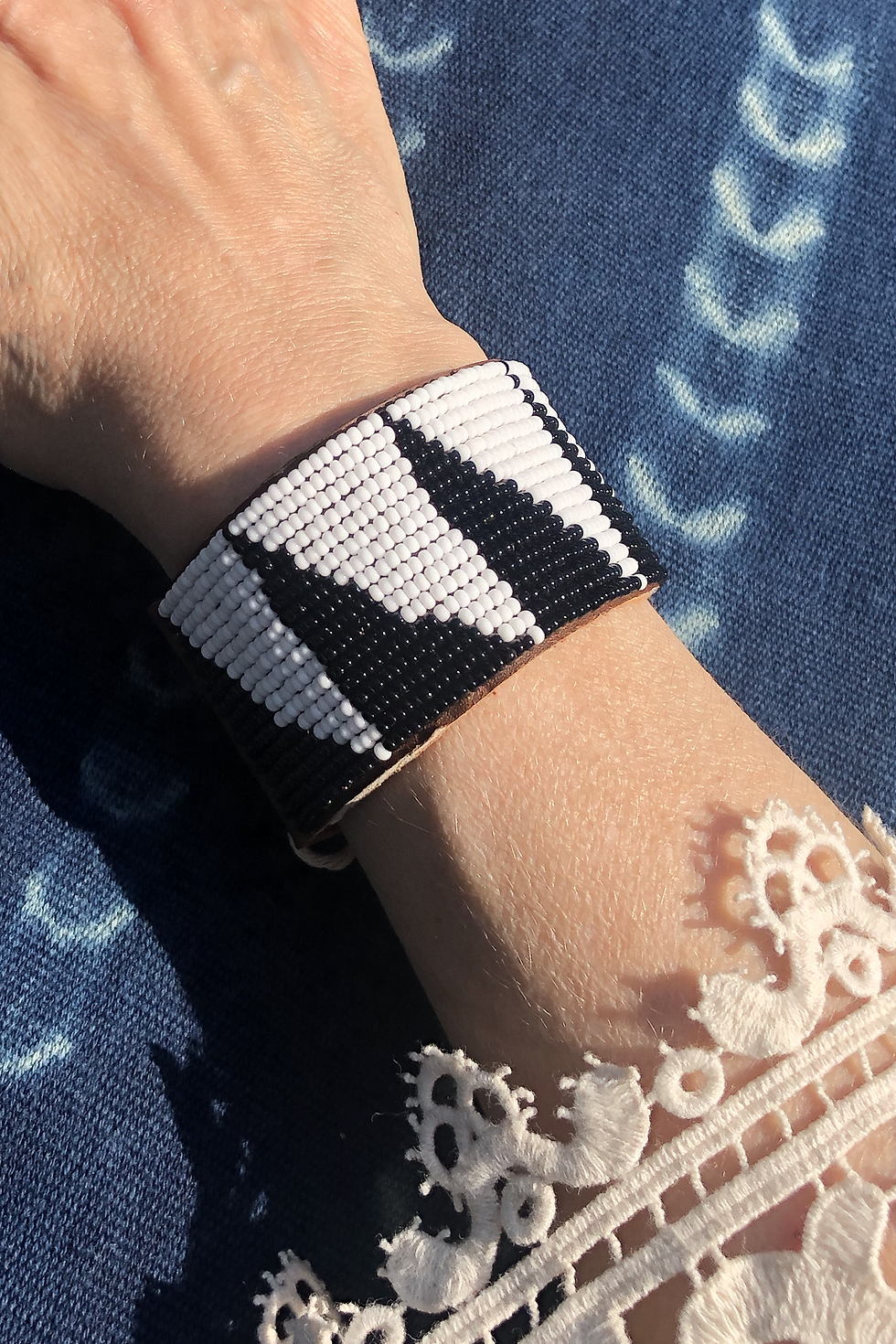 Stripes Light Neutral Extra Wide Beaded Cuff